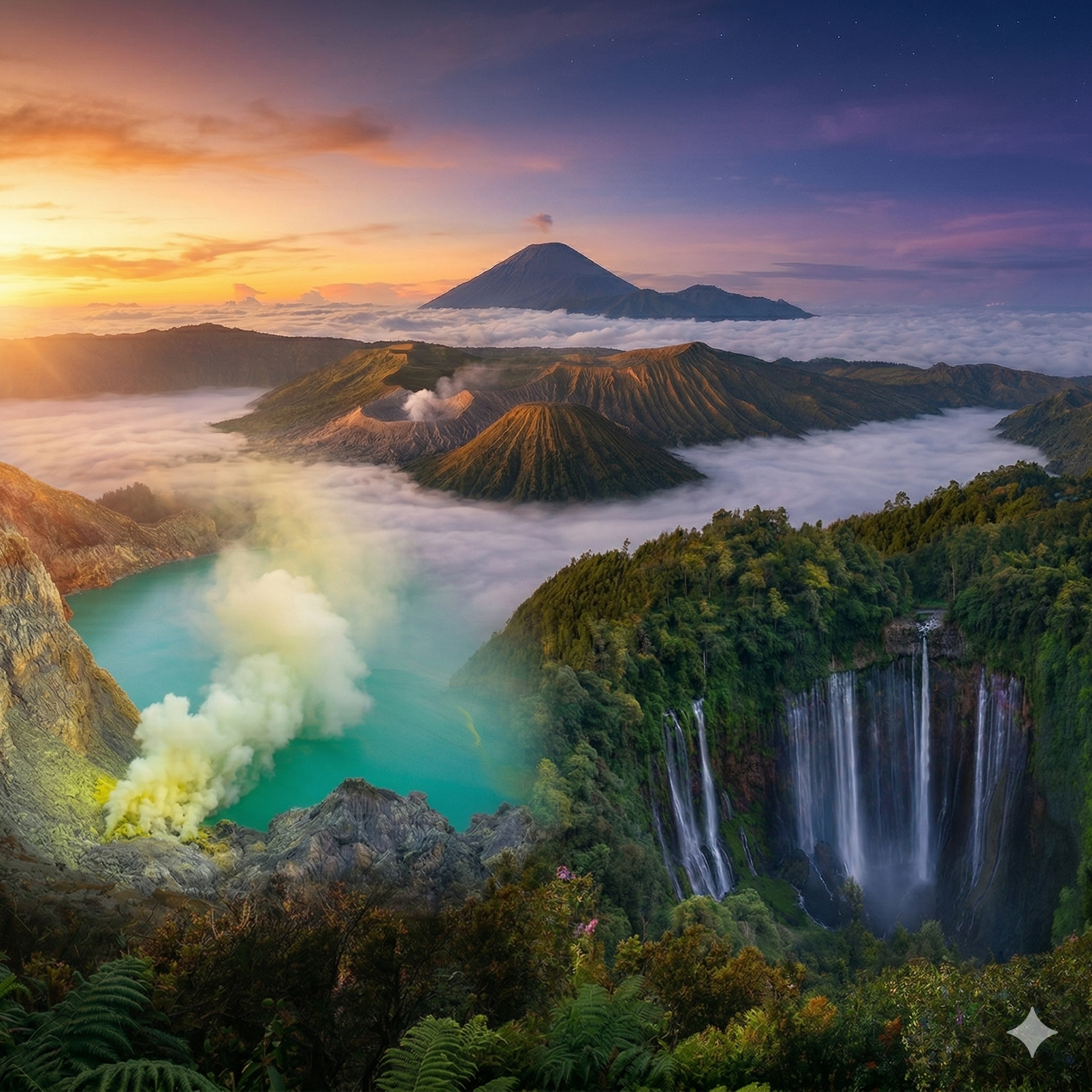 The most comprehensive tour: Bromo sunrise, Ijen’s blue fire, and Tumpak Sewu Waterfall.